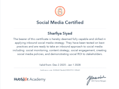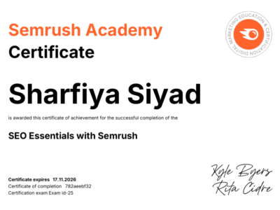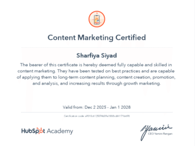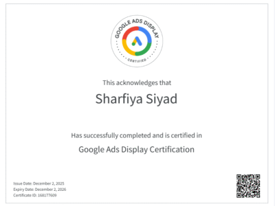 I’ve completed these certifications to build my knowledge and grow as a digital marketer.